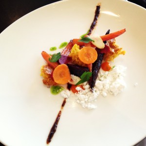 heirloomcarrots Posted by Gourmet Belly on July 29, 2013 Heirloom carrots with carrot cake, olive oil powder and raisin